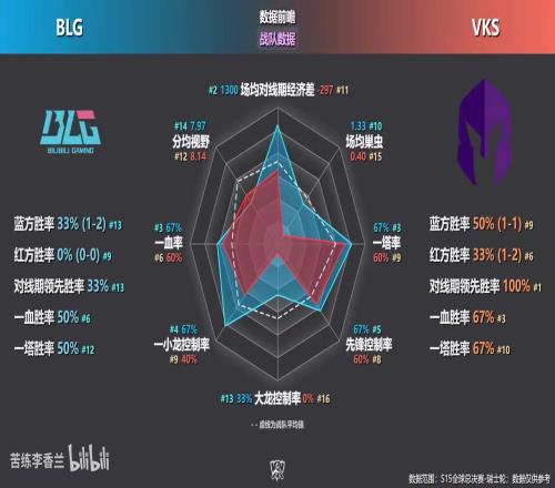 这总不能输了吧BLGvsVKS数据前瞻:BLG打野辅助多项数据领先