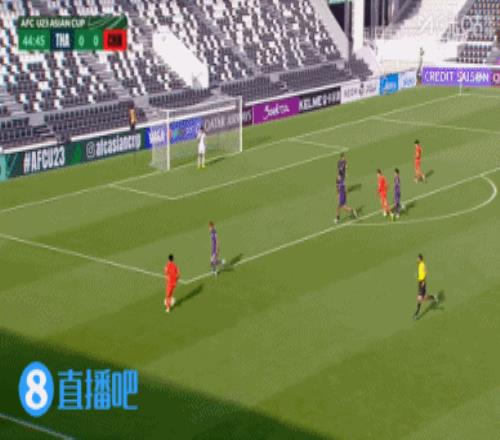 比赛第45分钟,蒯纪闻禁区左侧扣球后下底传中,皮球稍稍高了一点,后点U23国足球员没能顶到。