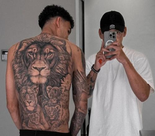 32岁的西班牙纹身师丹尼尔·斯通解释说:“卢乔(迪亚斯的昵称)在效力利物浦期间(2022年1月至2025年7月)找到我,因为他看到了我为他的前队友达尔文·努涅斯(26岁,现效力于利雅得新月)设计的纹身。他一直想纹一只和家人在一起的大狮子。我被要求设计一个象征迪亚斯想要保护家人的图案。这只狮子也应该体现他在球场内外所展现出的力量和勇气。”