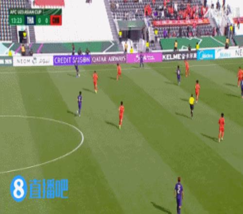 体育播报01月14日宣 U23亚洲杯小组赛D组第三轮,U23国足vs泰国。比赛第14分钟,泰国U23球员在禁区吸引多人防守,22号跟进一脚远射打高。这已经是泰国U23的第三脚远射尝试。