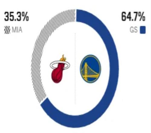 这是两队本赛季的第二次交手,上一次交手热火以14分之差大胜勇士。赛前,美媒ESPN对本场比赛进行了胜率预测,热火的胜率仅有35.3%,劣势明显,勇士队的胜率则高达64.7% 。